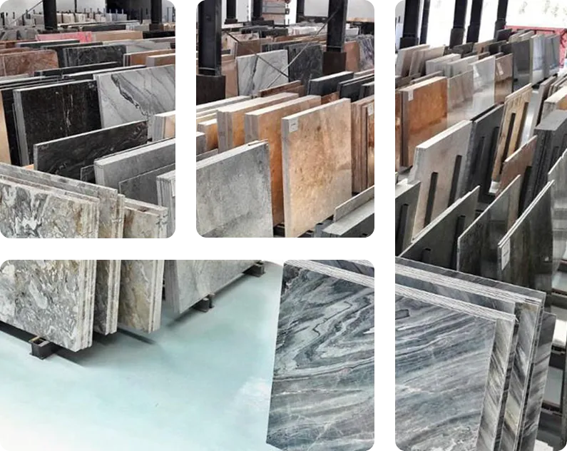 سنگها در ابعاد تایل (40×40، 60×60، 80×80)، اسلب (120×240 و بزرگتر)، پله و طولی عرضه میشوند. سطوح رایج شامل صیقلی، مات (Honed)، چرمی، سندبلاست، فلیم و … است.